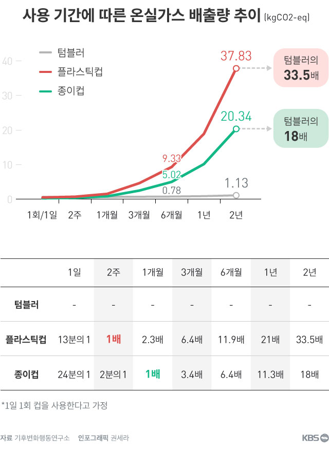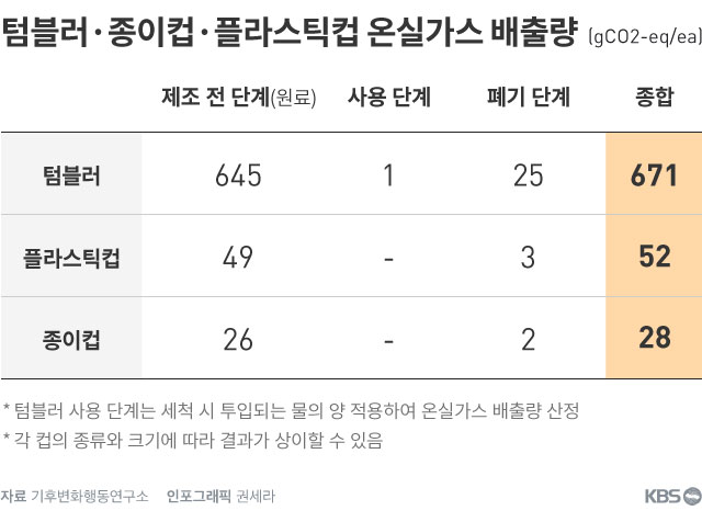 그래도 과유불급이라고 텀블러를 계속 사진 말아주세요. 텀블러 하나를 생산하는데 발생하는 탄소배출량은 종이컵의 24배 수준입니다. 그러니 잃어버리지 않고 꾸준히 사용해주는 것이 무엇보다 중요하겠죠?