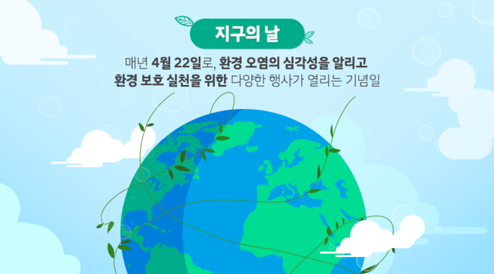 오늘은 4월 22일 지구의 날입니다. 지구의 날은 미궁에서 1969년 발생한 캘리포니아 기름유출사고를 계기로 지구의 날 선언문을 발표하고 행사를 주최한 것에서 비록된 기염일로 작년 50주년을 맞이한 기념일이기도 합니다.