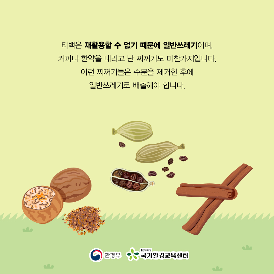 간혹 녹차티백에 있는 잎이 음식물이니 음식물쓰레기로 배출하는 것이 옳다고 생각하는 사람들도 있습니다.