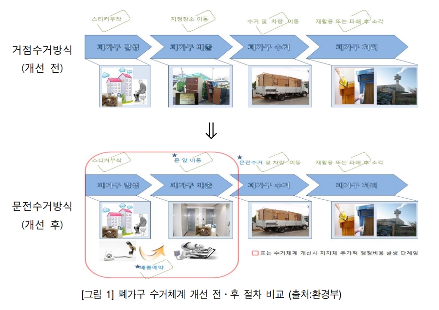 최근 경기도에서는 거점수거방식에서 문전수거방식으로 시범사업을 추진한 적이 있습니다. 상당히 의미가 있어보이는데요. 1인가구, 아파트거주율의 증가로 가구를 거점까지 배출하는 것은 생각보다 중노동입니다. 앞으로 전체적으로 문전수거형식으로 확대되길 기대합니다.