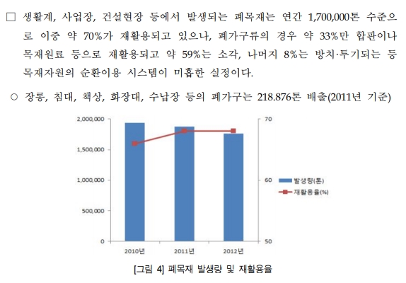 폐가구의 열회수는 폐가구를 분쇄해서 만든 우드칩, 목재펠릿을 열병합발전소의 연료로 사용하는 것을 말합니다. 결국 나무는 훌륭한 뗄감으로 열효율이 좋은만큼 에너지를 생산하기 위한 연료로 사용될 수도 있습니다.